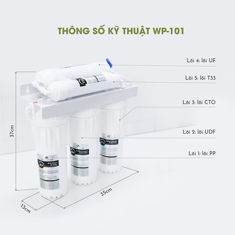 Máy lọc nước WP-101 là một trong những thiết bị máy lọc nước giá 2 triệu tốt nhất hiện nay mà bạn nên mua. Thiết bị này giúp đem lại nguồn nước tinh khiết cho cả gia đình bạn với mức chi phí điện năng tương đối thấp so với các loại máy lọc nước thông thường.